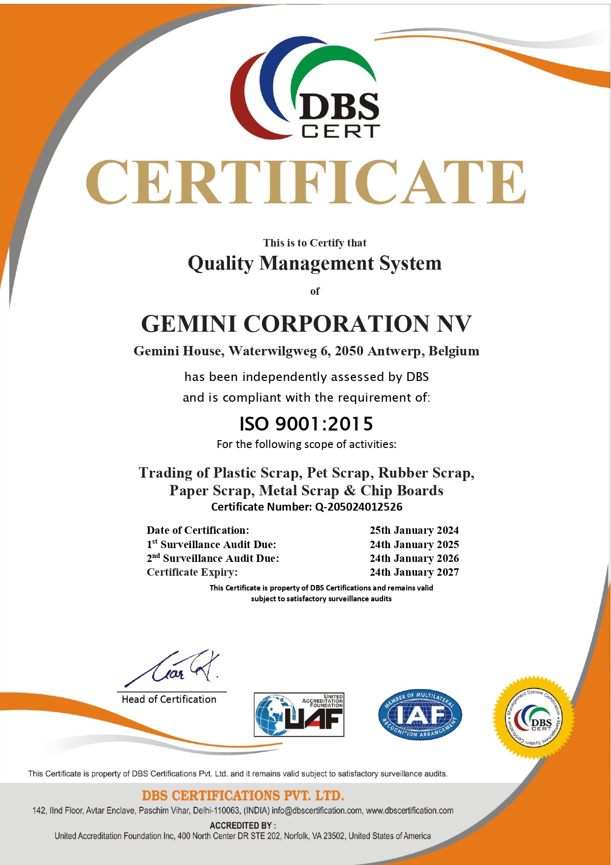 Certifications