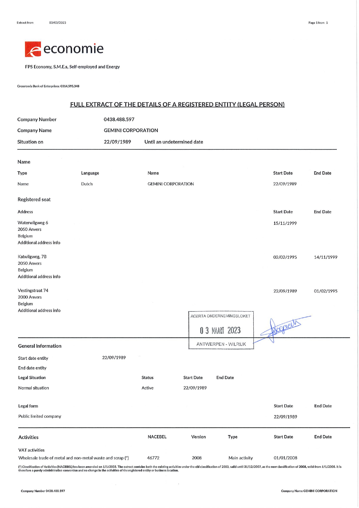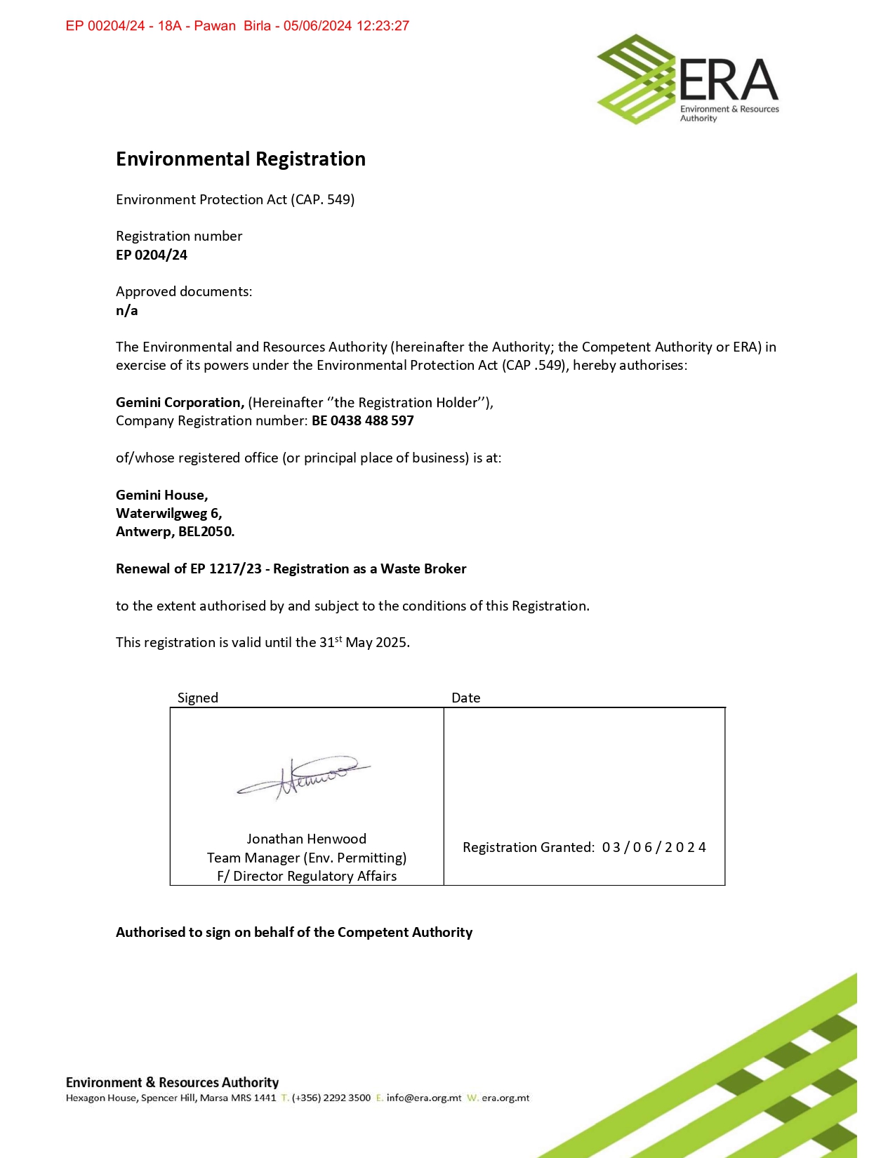 Registration & Other Certificates