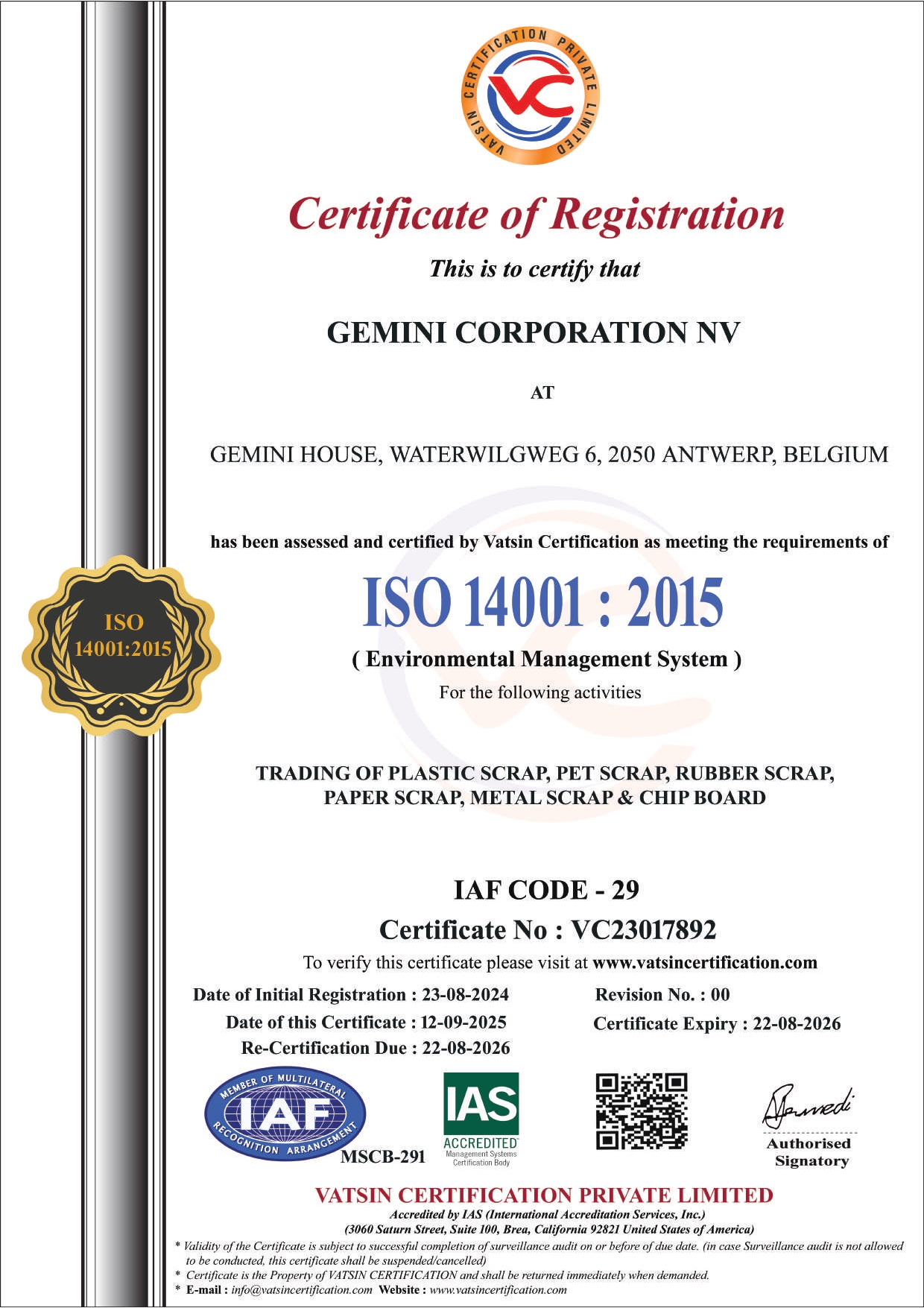 Registration & Other Certificates